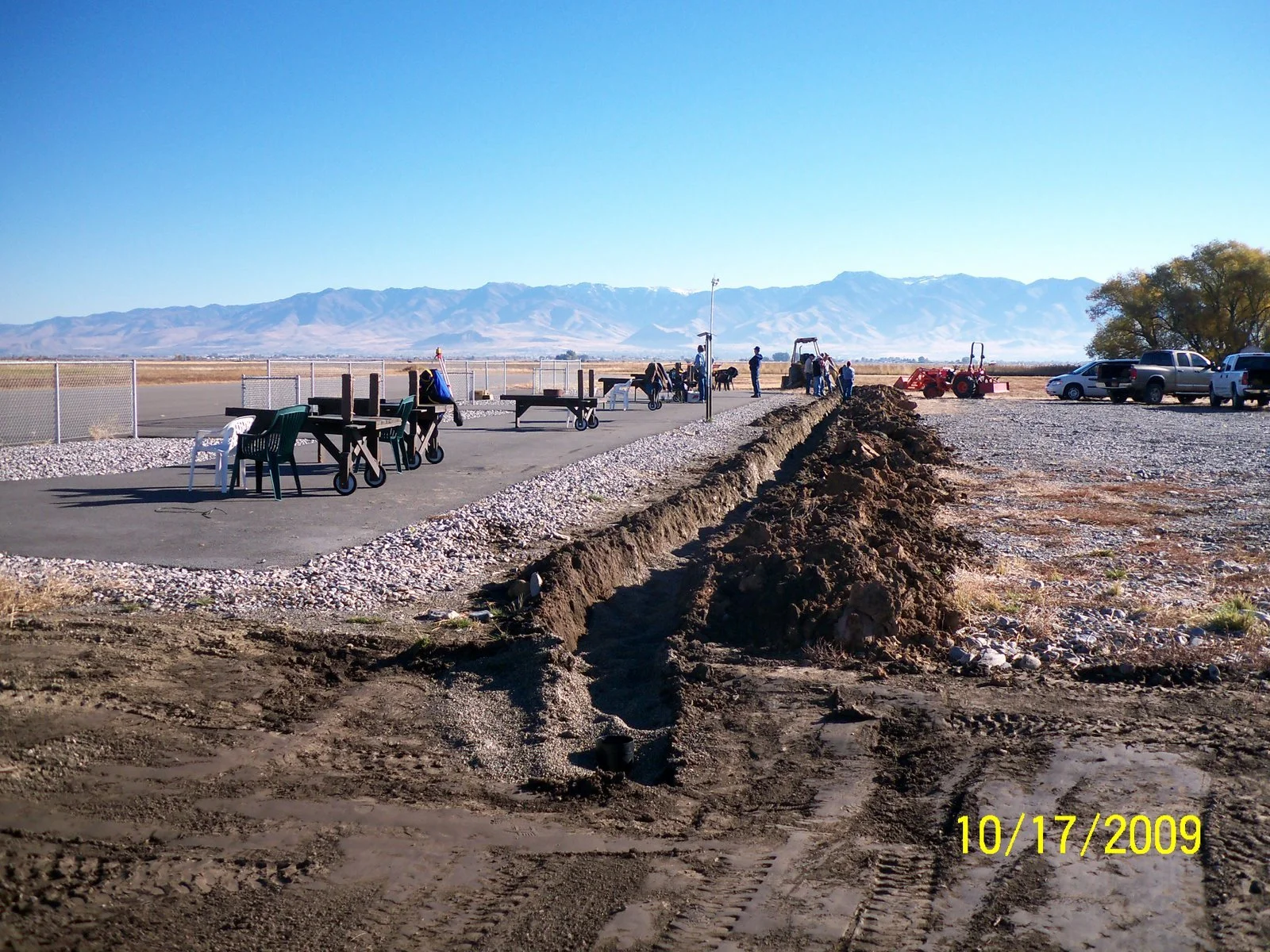 Jerry Cokely personally met with each Wellsville City Council person to encourage them to vote in favor of having the City donate pit run gravel for the new flying site. All but one was in favor. Club members then met at the City Council Meeting where Michael Smith made a verbal presentation to the Mayor and City Council who then voted in favor of donating the gravel. There were two major gravel hauling days, one in November 2005 and the second in June 2006. The November delivery resulted in one of the gravel trucks sinking deeply into the soft soil under the black weed barrier material. This necessitated the gravel to be dumped along the edges of the runway and later distributed over the runway. It was a less desirable method but the only choice as there were many gravel trucks under contract to haul gravel to the field that day. Ivan Hooley later spent many hours on the front-end loader leveling out the gravel as best he could with a front end loader. More gravel was needed and in June 2006 the second delivery of pit run gravel was deposited on the runway, once again, donated by Wellsville City.